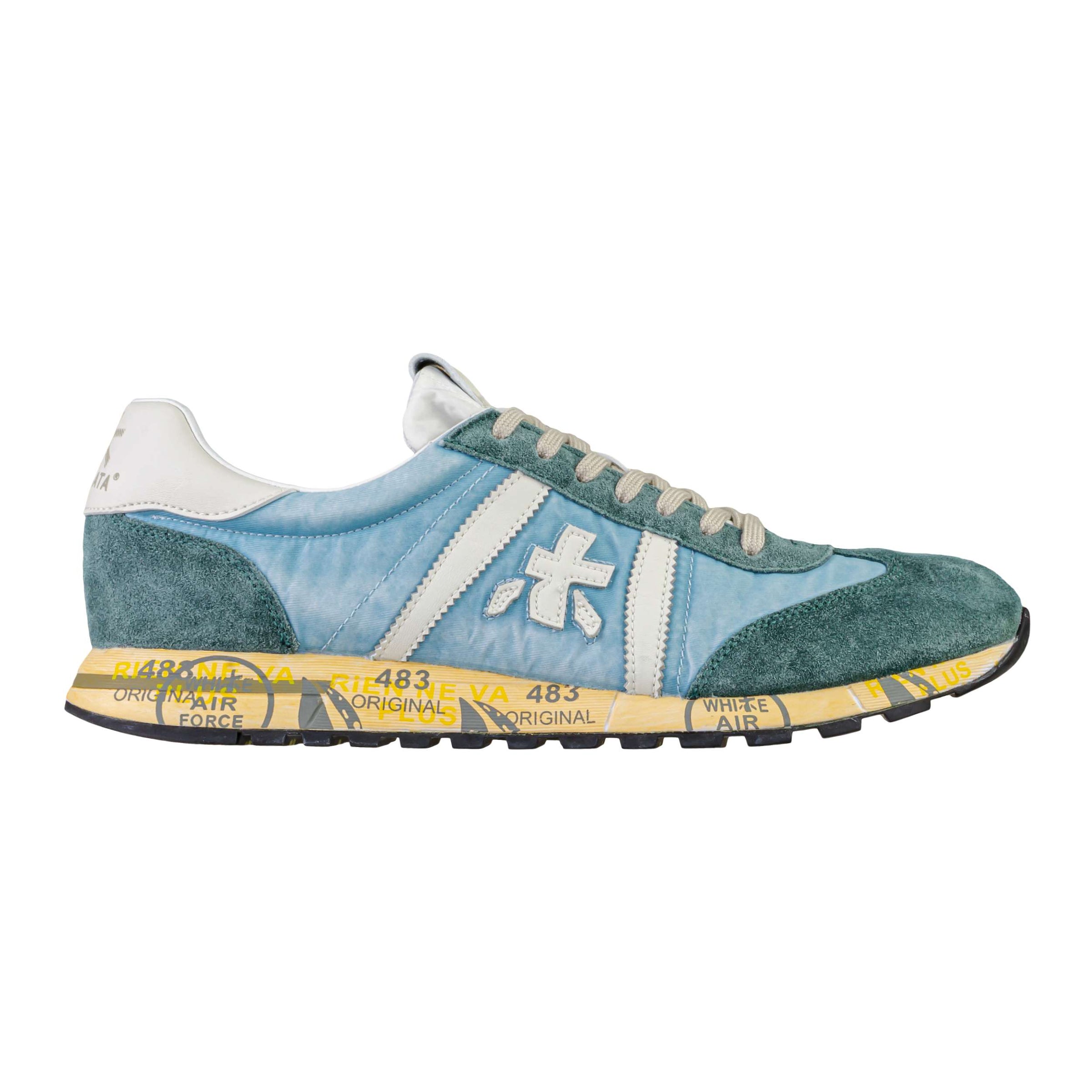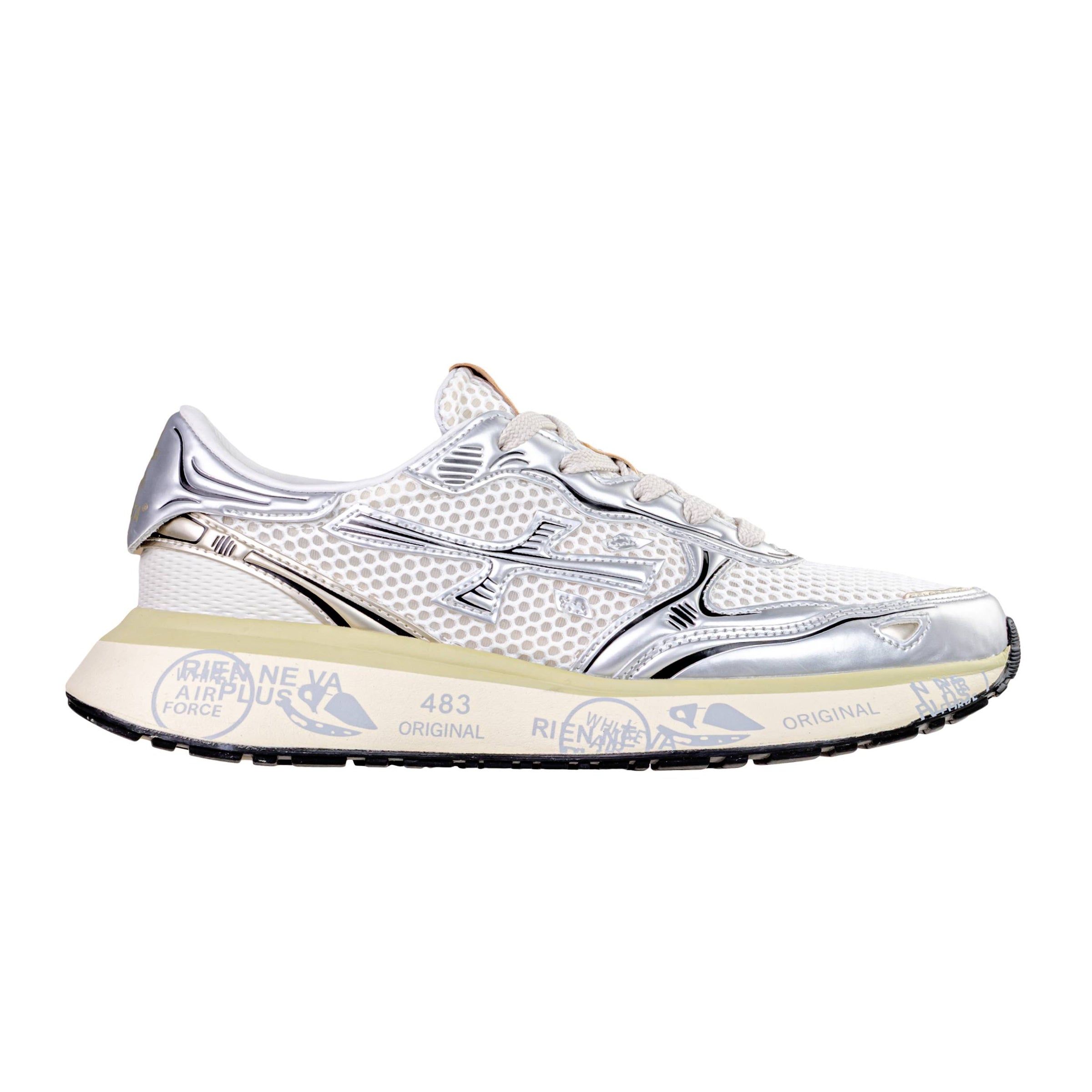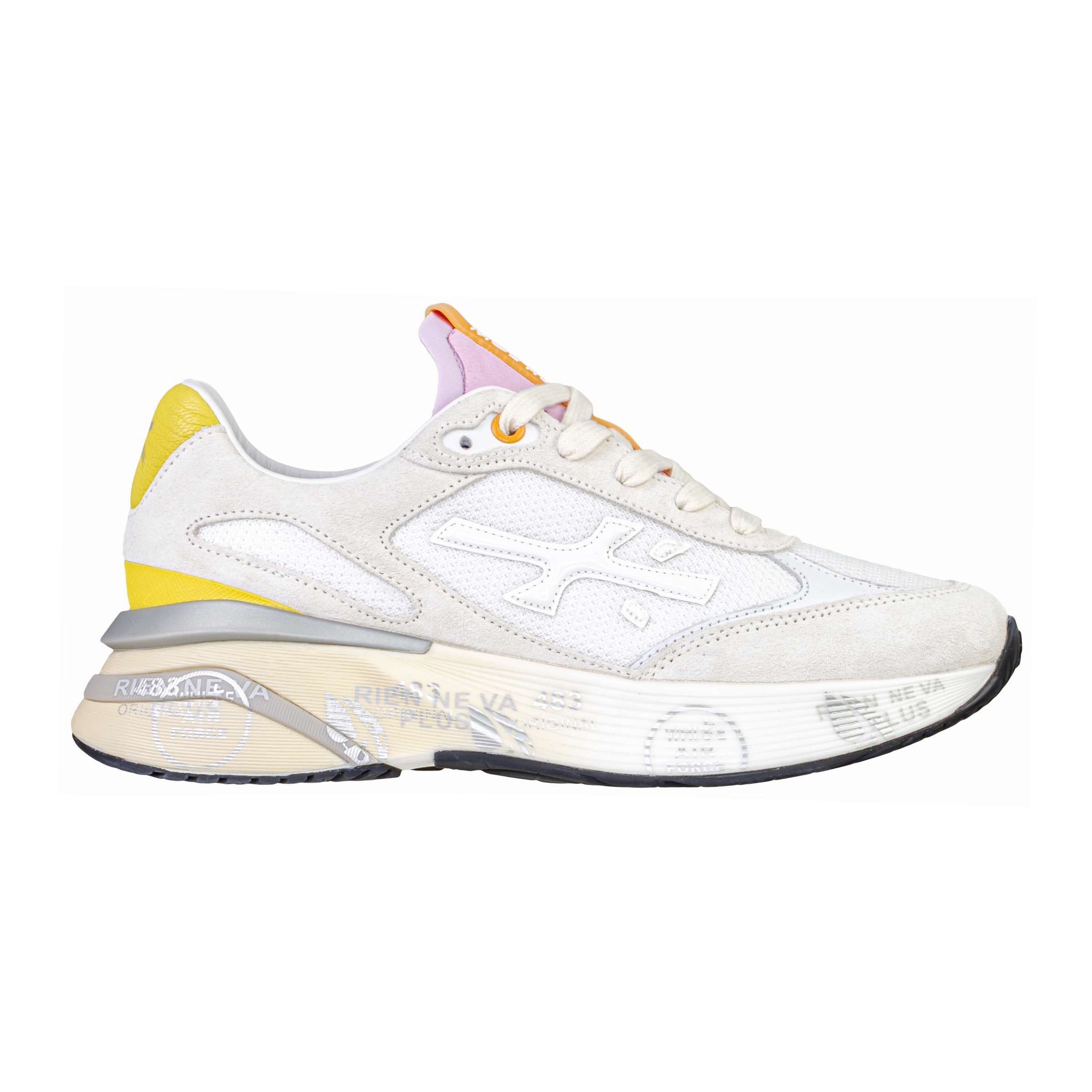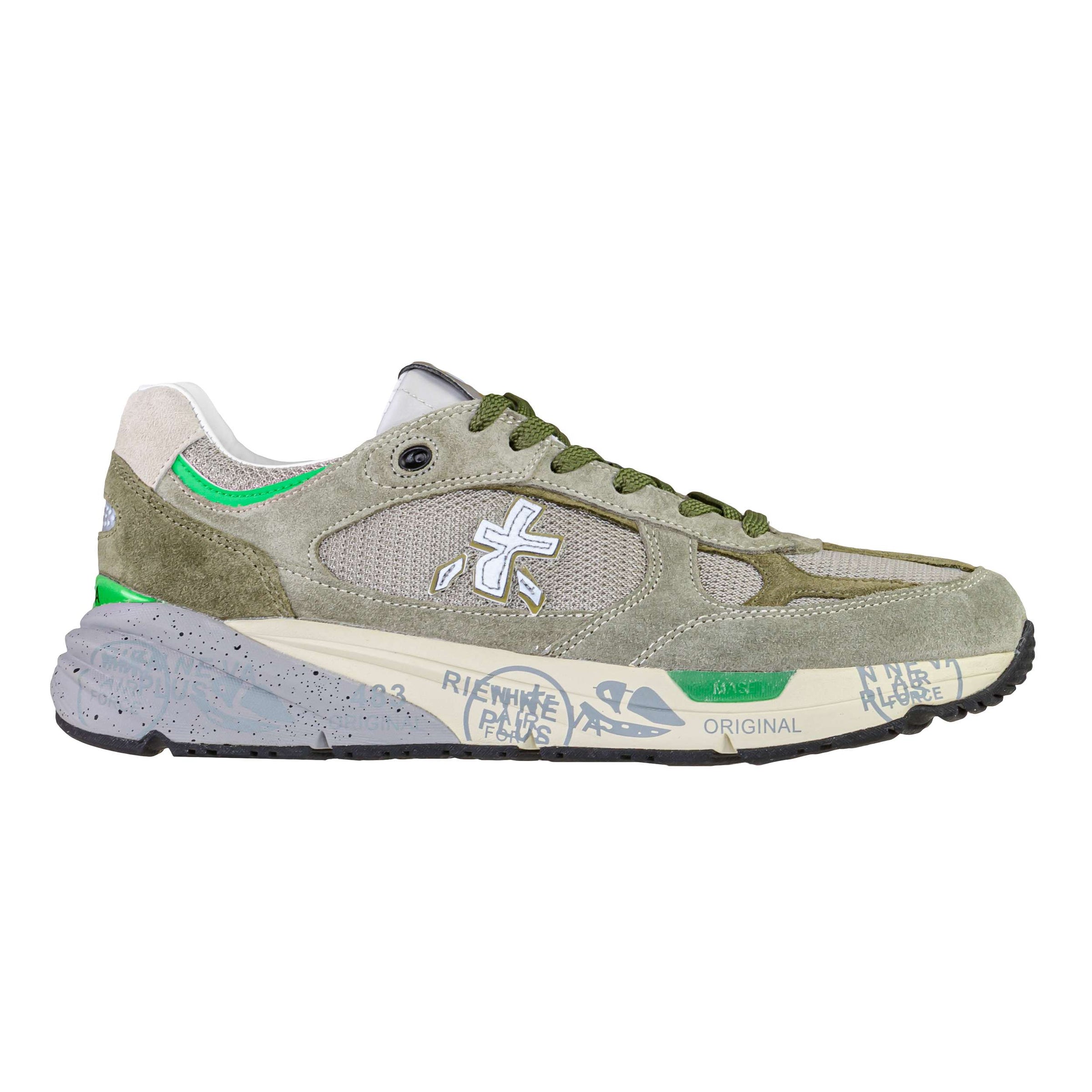 Tomaia (Esterna): Realizzata in mesh traspirante con inserti in camoscio, per una combinazione equilibrata di leggerezza, comfort e resistenza.