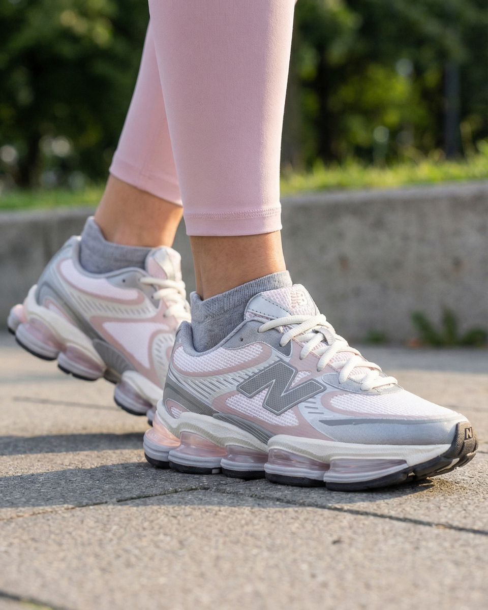 Dettagli Estetici: Design chunky con forme scolpite, logo New Balance laterale ben visibile e struttura posteriore che aiuta a mantenere il piede stabile.