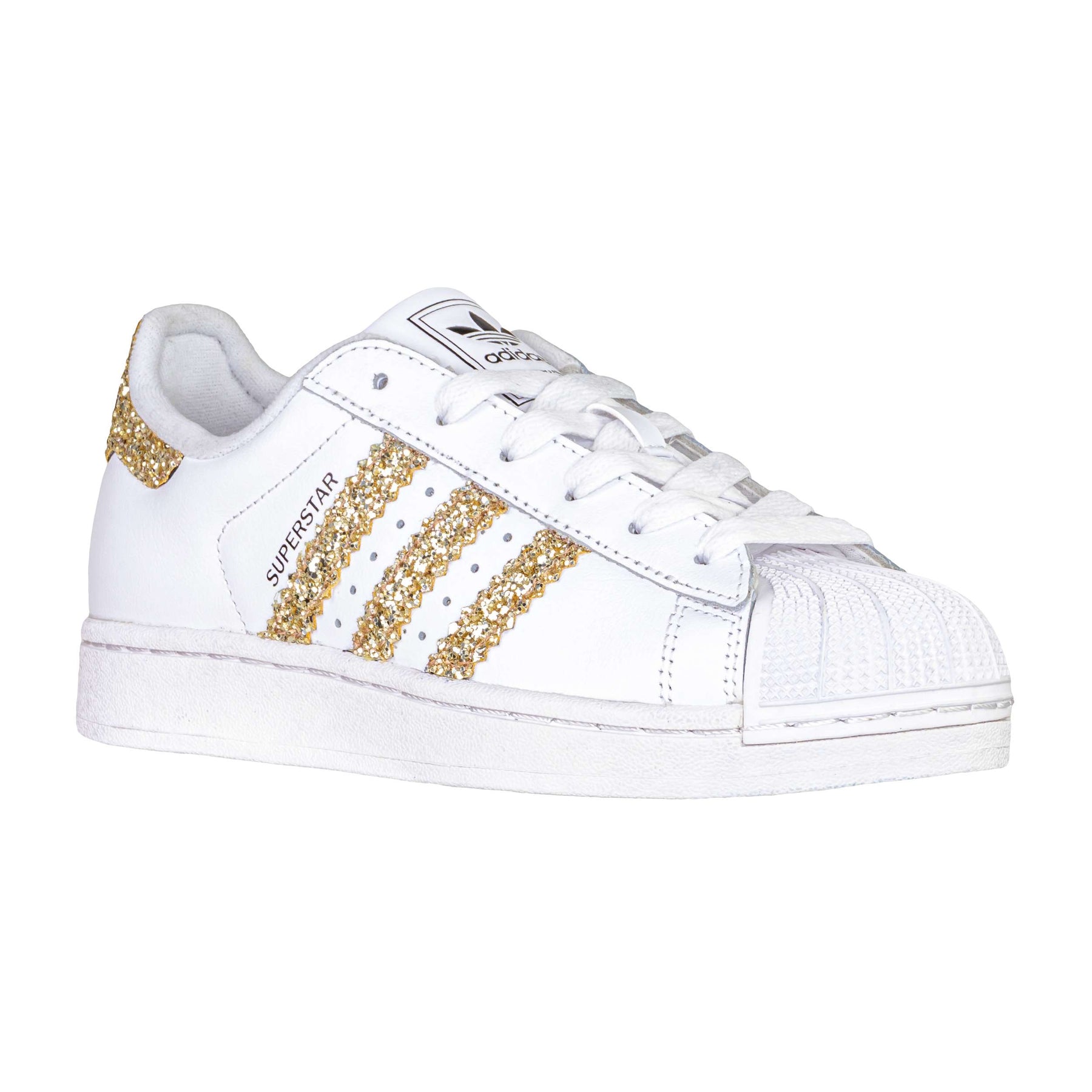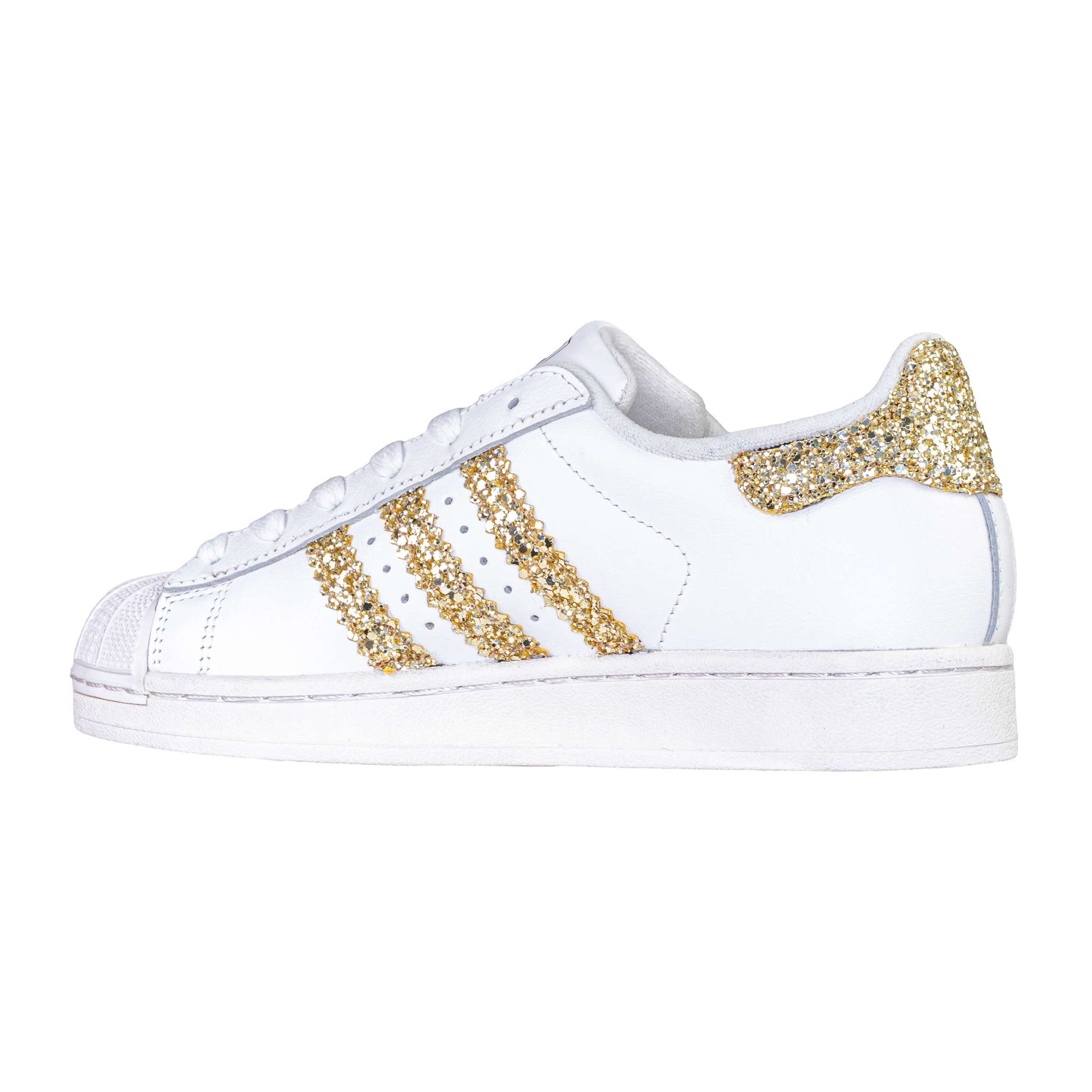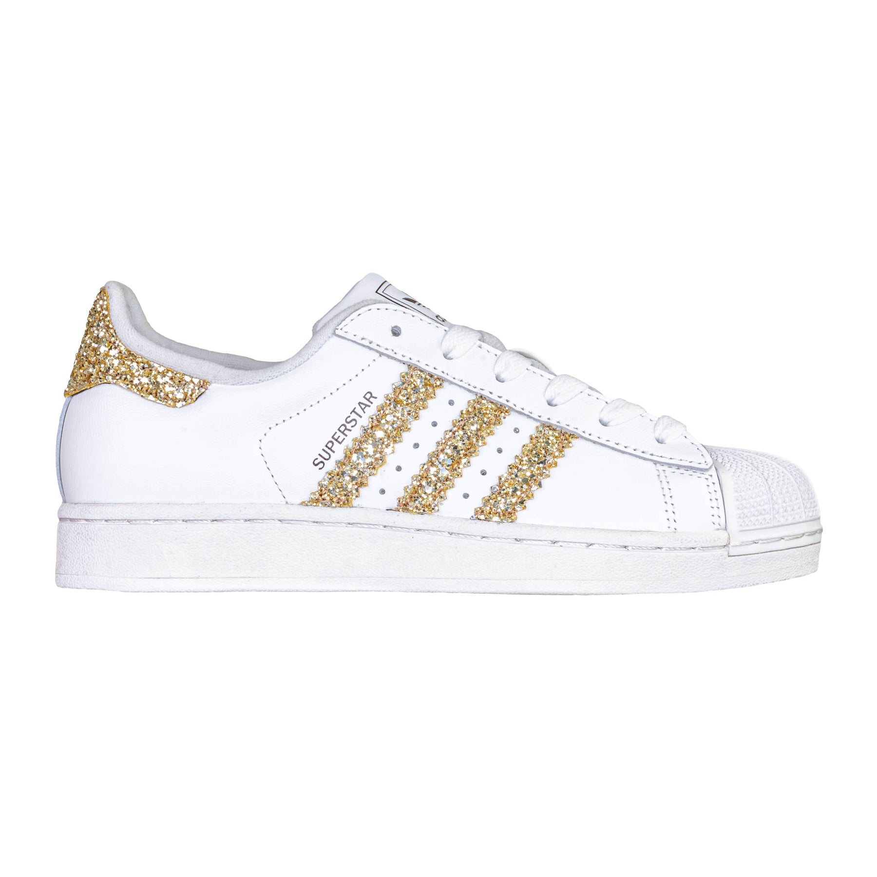 La scarpa indossata dai campioni. Questo modello viene ottenuto mediante l'applicazione di tessuto glitterato oro al posto del classico simbolo e sul retro.