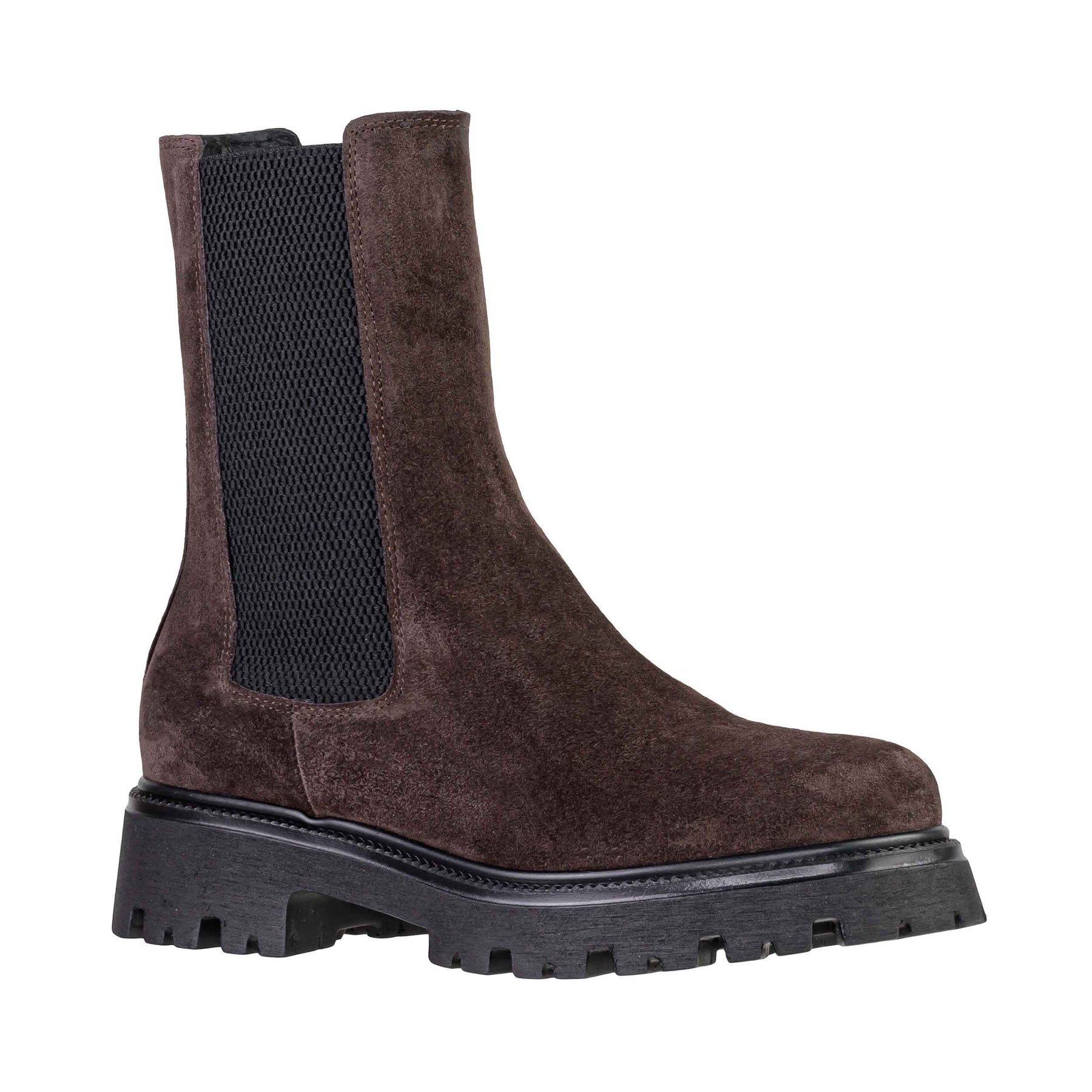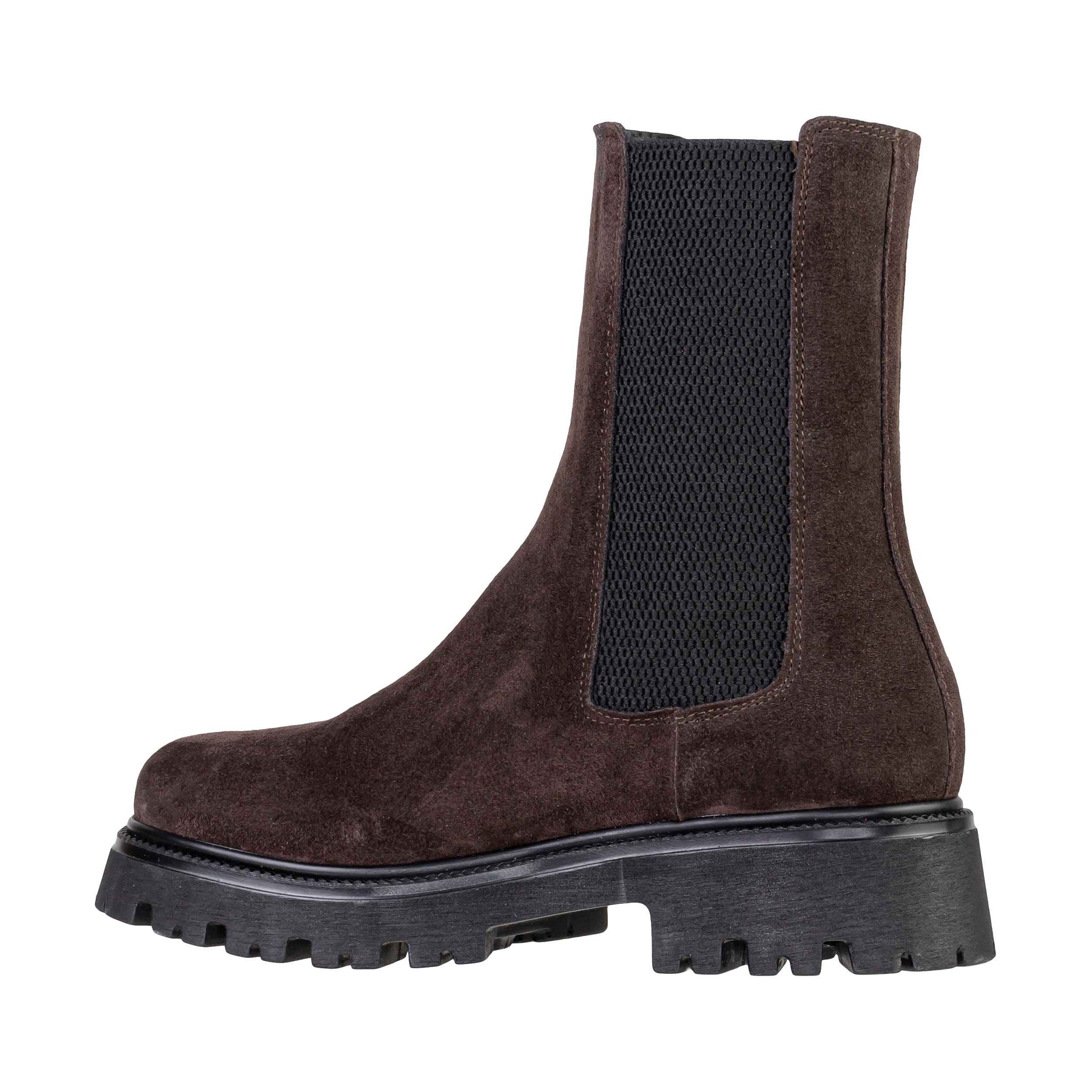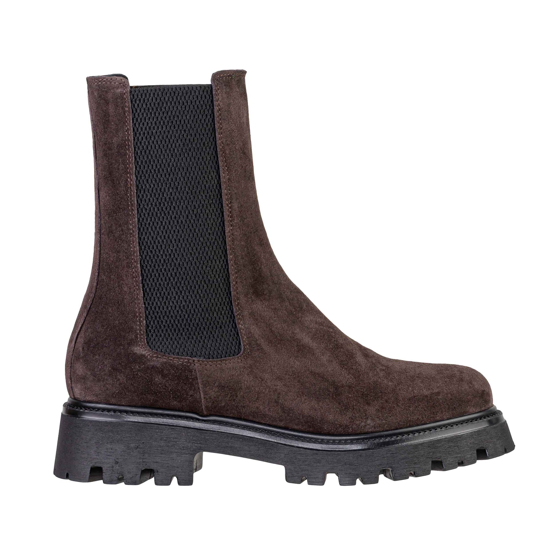 Lo stivaletto VSL 1978 modello 7128 è la perfetta fusione tra l'eleganza classica del design italiano e le tendenze più cool dello street style. Realizzato in morbido Camoscio Moro (Marrone Scuro), questo stivaletto (nella tipologia Chelsea) si distingue per la sua robusta suola platform carrarmato e i classici inserti elastici laterali, unendo comodità a un'estetica di grande impatto.