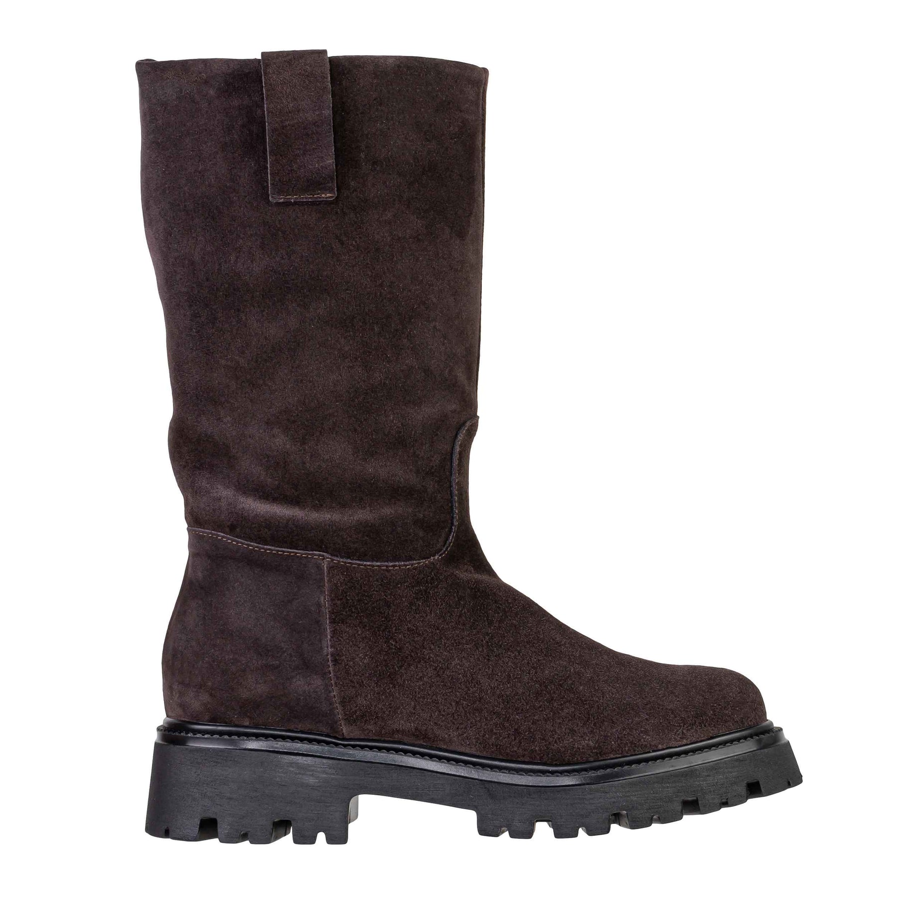Questo stivale, di pura manifattura Made in Italy, unisce il comfort quotidiano del fondo flat a un'altezza che lo rende perfetto da indossare sotto gonne midi o pantaloni sartoriali. È l'accessorio ideale per chi cerca stivali invernali in camoscio comodi e di alta qualità, o per chi desidera il look degli stivali biker ma con l'eleganza di un modello senza cerniere, amato da stylist e fashion influencer per la sua versatilità.
