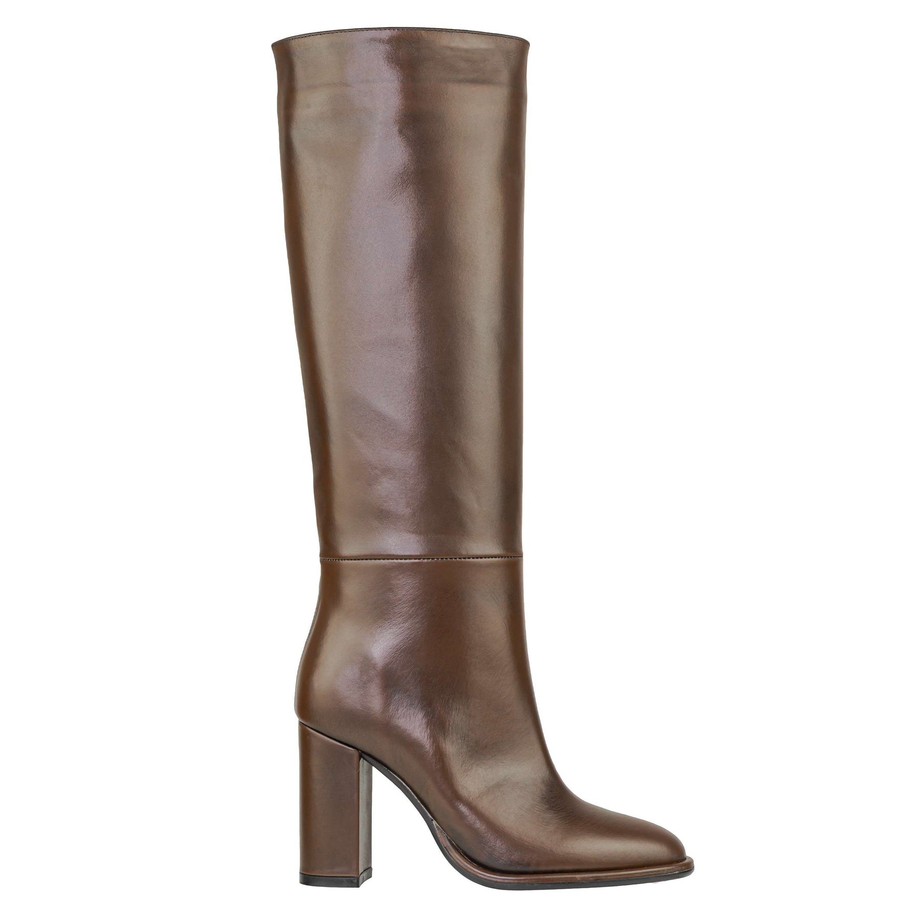 Lo stivale da donna Bianca Di, modello R2461VTT in vitello color caffè, è realizzato in Italia con tomaia in pelle,soletta in pelle, fodera in ecopelle e fondo in gomma. Il gambale alto 38,5 cm avvolge elegantemente la gamba, mentre il tacco largo da 9 cm slancia la figura mantenendo comfort e stabilità. Raffinato e versatile, è perfetto per completare i look della collezione autunno/inverno 2025 con stile ed eleganza.