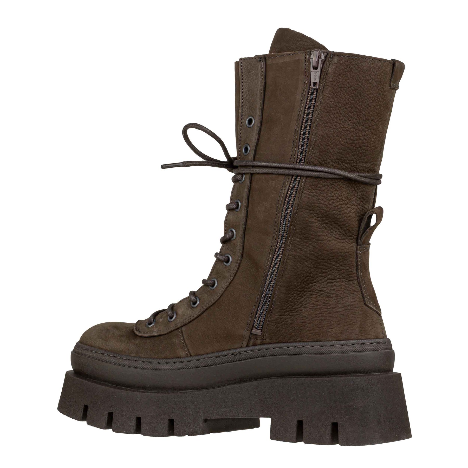 Lo stivale Copenhagen CPH691 in nabuk color cioccolato è un concentrato di stile urbano e carattere contemporaneo. La tomaia in nabuc dal finish opaco regala un tocco sofisticato e materico, con gambale alto 21 cm perfetto per la stagione fredda. Il design stringato con occhielli metallici si arricchisce di una comoda zip laterale, che lo rende pratico da indossare senza rinunciare all'estetica. Internamente, fodera e soletta in pelle offrono comfort e traspirabilità, mentre la suola chunky in gomma con tacco da 5 cm aggiunge grinta e stabilità, slanciando la figura. Un modello ideale per chi ama distinguersi con uno stile deciso ma curato nei dettagli. Perfetto per accompagnare i tuoi look autunno inverno 2025.