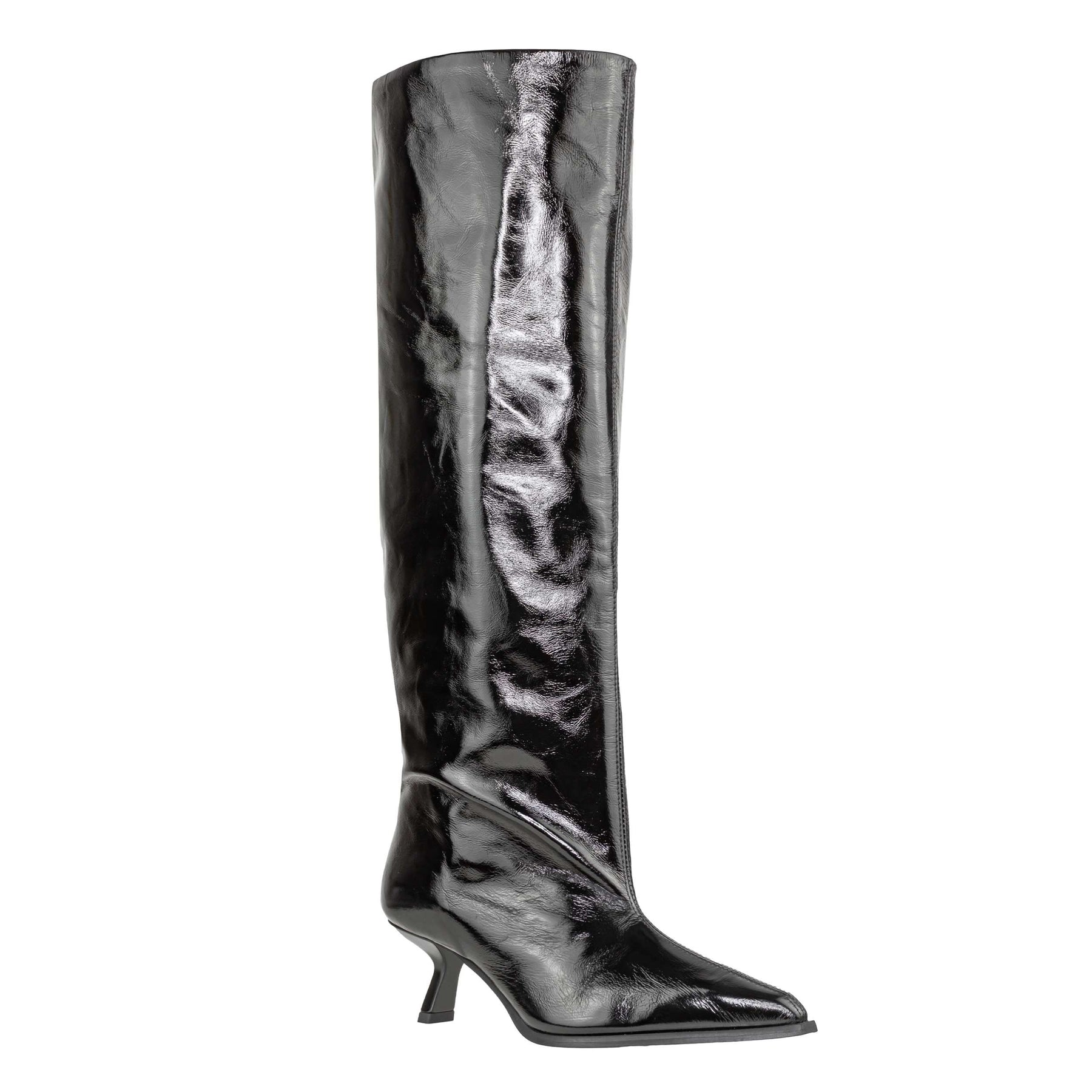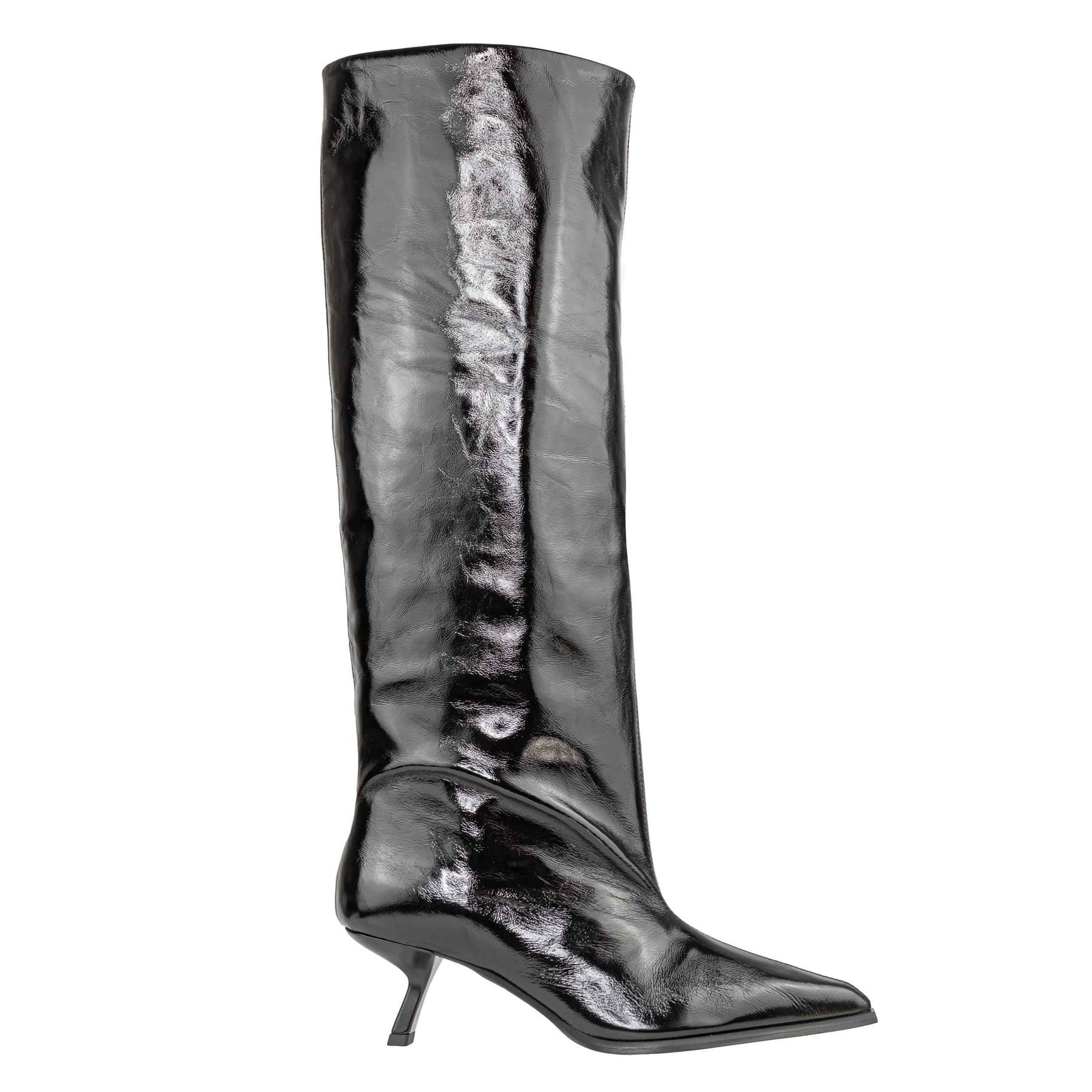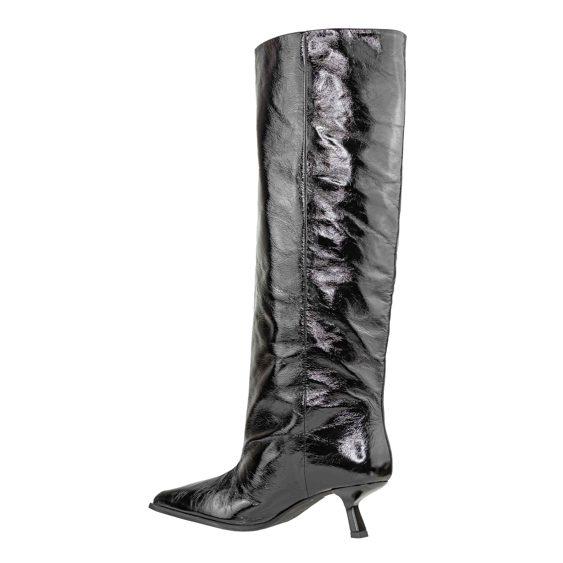 Stivale firmato Poeve modello TOF20 Venice 20150 nero. Realizzato in pelle lucida con fodera e soletta in pelle, presenta una linea elegante e slanciata con gambale alto 43 cm e tacco sottile di 6 cm. Suola in gomma per una camminata stabile. Prodotto Made in Italy, ideale per la stagione autunno inverno 2025.