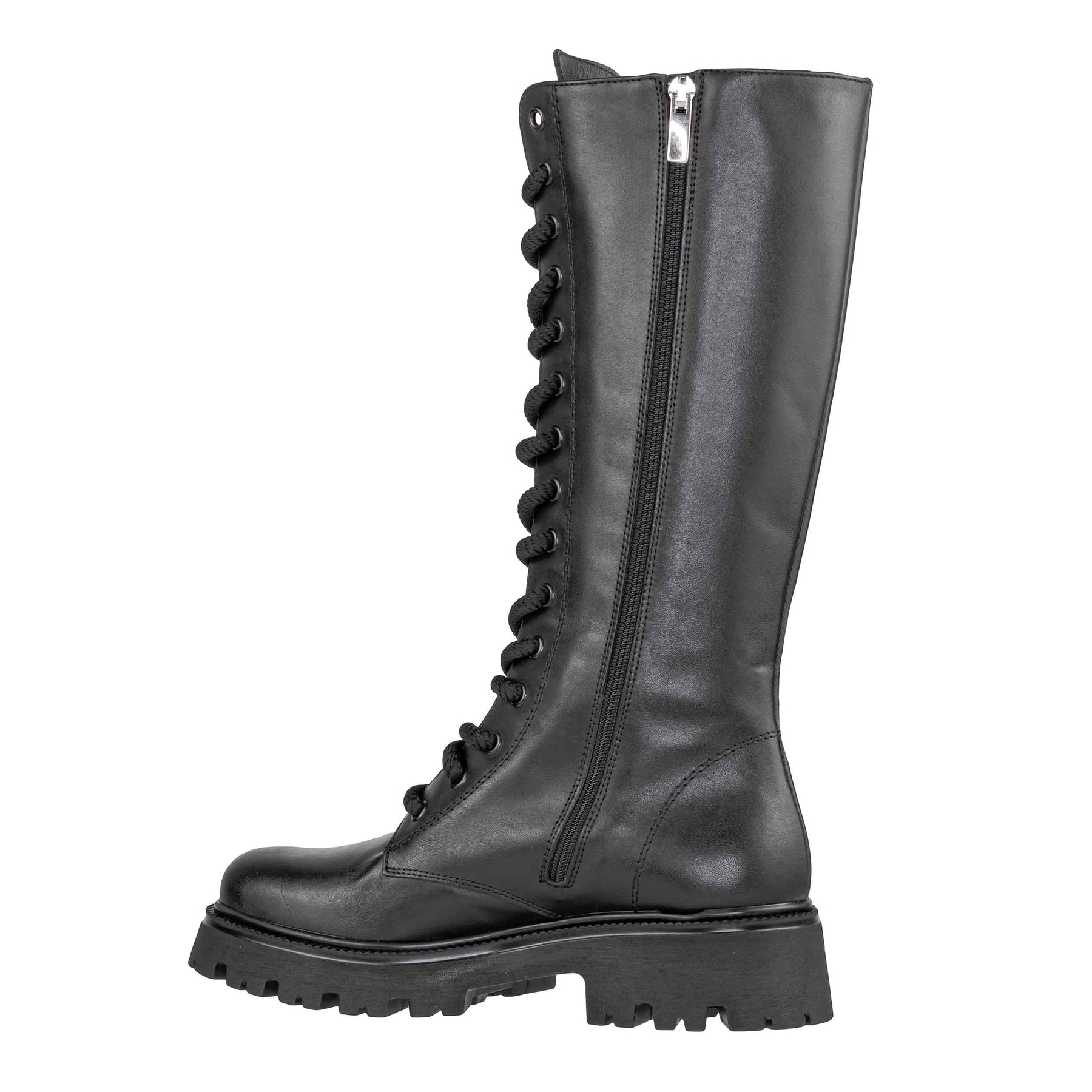 Lo stivale VSL 7113 SIDNEY NERO cattura lo spirito urban-chic con una silhouette grintosa e femminile. Realizzato in pelle con fodera e soletta in pelle, offre comfort e qualità artigianale Made in Italy. Il dettaglio distintivo è il gambale alto 32 cm con allacciatura frontale e maxi lacci in corda, che dona carattere e un tocco contemporaneo, mentre la zip laterale facilita la calzata. Il fondo alto 4,5 cm in gomma dentellata assicura stabilità, perfetto per affrontare l’autunno inverno 2025 con stile deciso.