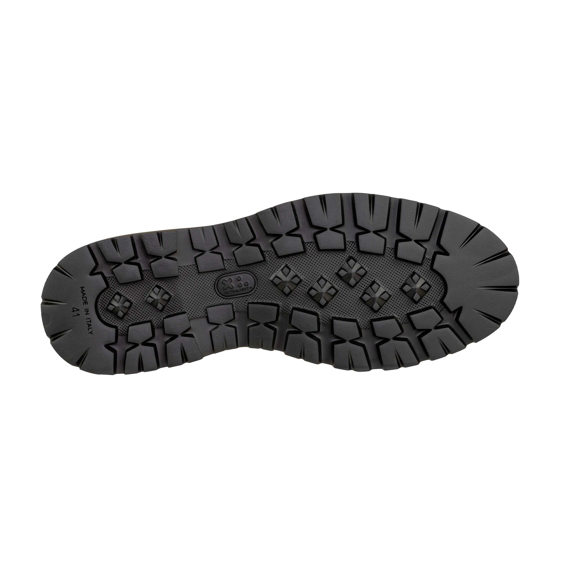 La fodera e la soletta interna sono in pelle, a garanzia di traspirabilità e comfort anche dopo molte ore di utilizzo. Il fondo in gomma dentellata con tacco da 3,5 cm dona stabilità e uno slancio discreto alla silhouette, mantenendo al tempo stesso leggerezza e flessibilità nei movimenti.