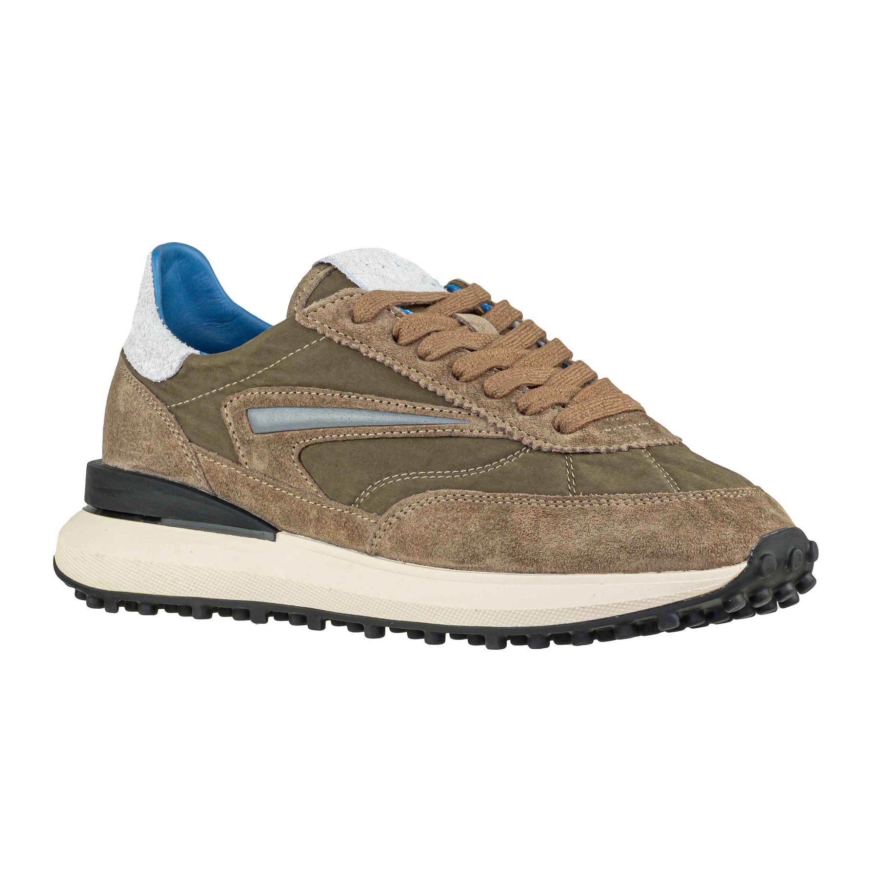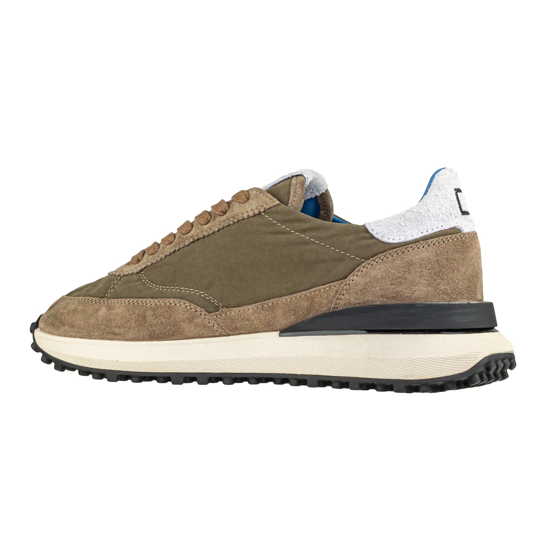La sneakers D.A.T.E. Athleta Touch Mud è una scelta perfetta per chi cerca uno stile sportivo raffinato e comfort quotidiano. Realizzata in una combinazione di nylon e pelle scamosciata color fango, si distingue per i dettagli curati e il look urbano. Sulla linguetta è impressa la scritta D.A.T.E., mentre sul tallone spicca il logo quadrato ricamato in suede bianco "hairy", in contrasto con il dettaglio laterale grigio stampato. L'interno è progettato per offrire il massimo del comfort: la fodera è in pelle e spugna di cotone, mentre la soletta interna è leggermente rialzata di 2,5 cm per sostenere il piede durante tutta la giornata. I lacci sono in cotone e la suola in gomma, alta fino a 3,5 cm, garantisce stabilità e un'ottima ammortizzazione. Tutti i materiali utilizzati sono selezionati e Made in Italy. Vestibilità regular. Perfetta per la stagione autunno inverno 2025.