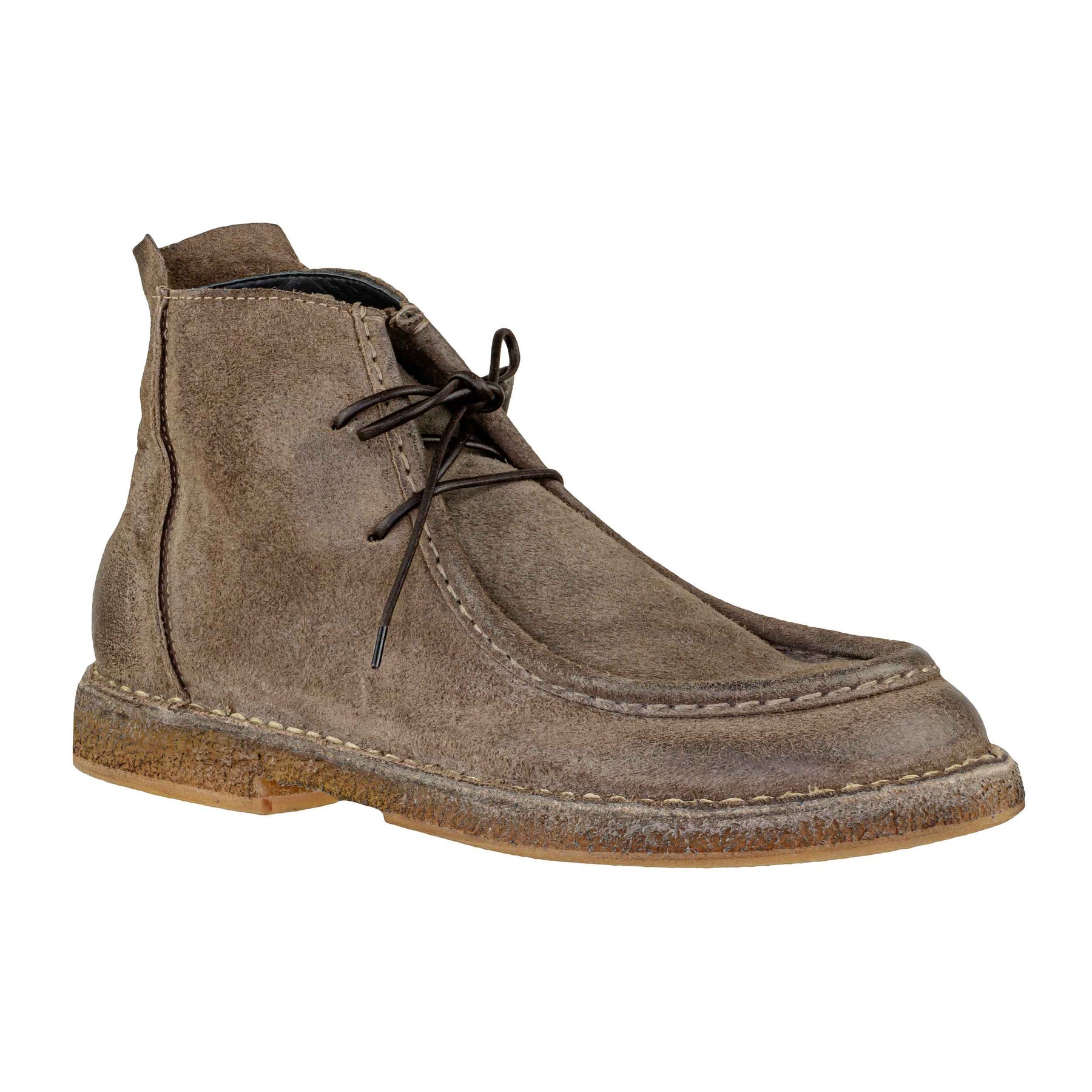 Lo stivaletto MOMA 56503C-TU Tuscany Tortora è un perfetto esempio di artigianalità italiana e stile senza tempo. Realizzato in pregiato camoscio color tortora, offre una texture morbida e naturale che conferisce carattere e versatilità. La fodera e la soletta in pelle garantiscono comfort e traspirabilità durante tutta la giornata, mentre il fondo in gomma assicura leggerezza e un’ottima aderenza. Il design con cuciture a vista e allacciatura semplice richiama lo spirito casual-chic, perfetto per la stagione autunno/inverno 2025. Un modello raffinato e comodo, ideale per chi cerca un look curato con un tocco di autenticità.