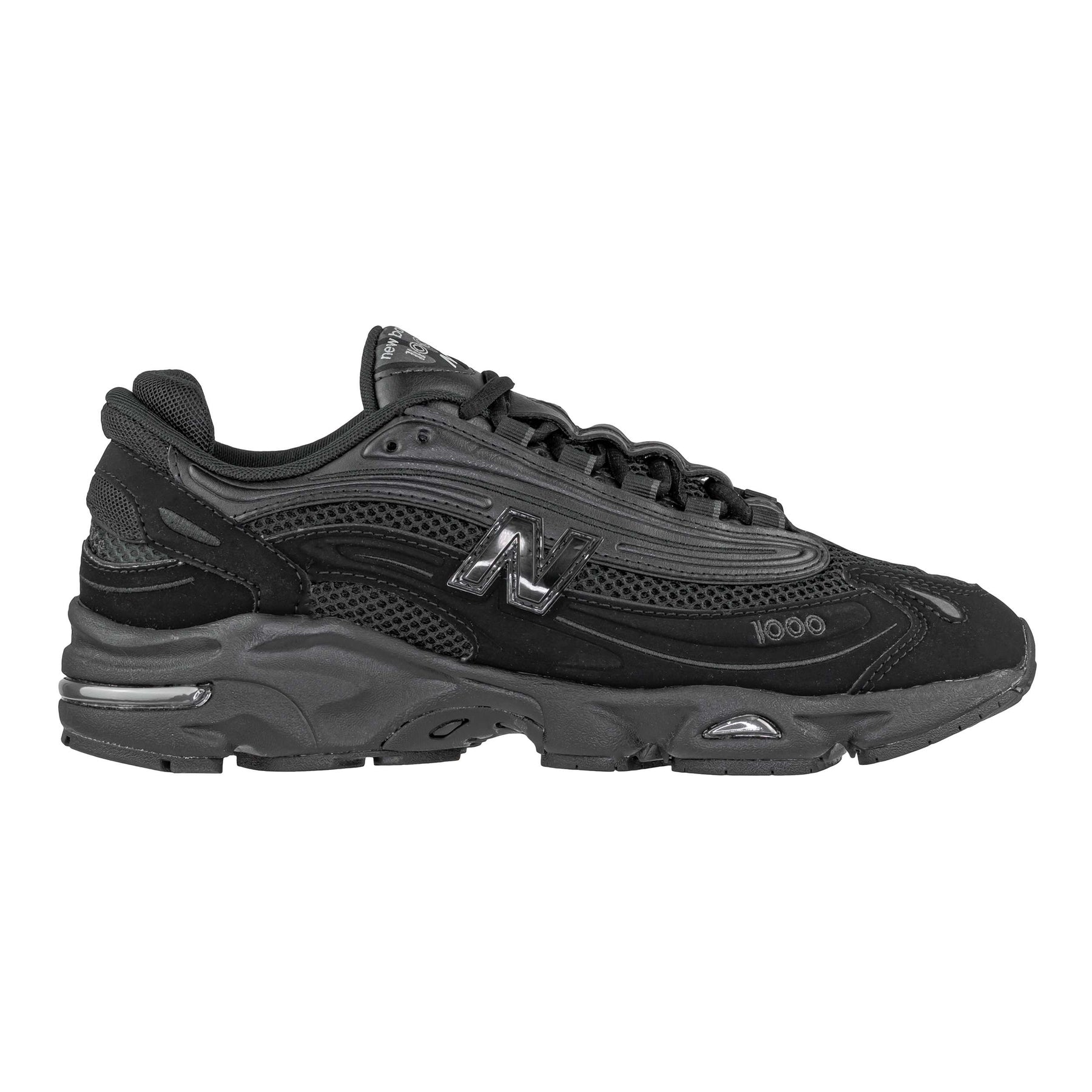 Sneakers NEW BALANCE M1000B dal look sportivo e deciso, interamente in nero. La tomaia combina tessuto tecnico, camoscio e inserti in pelle, offrendo struttura e traspirabilità. L’interno è foderato in tessuto con soletta confortevole, mentre il fondo in gomma con profilo alto da 4 cm assicura stabilità e ammortizzazione. Perfetta per la stagione autunno inverno 2025, un modello versatile e grintoso per ogni giorno.