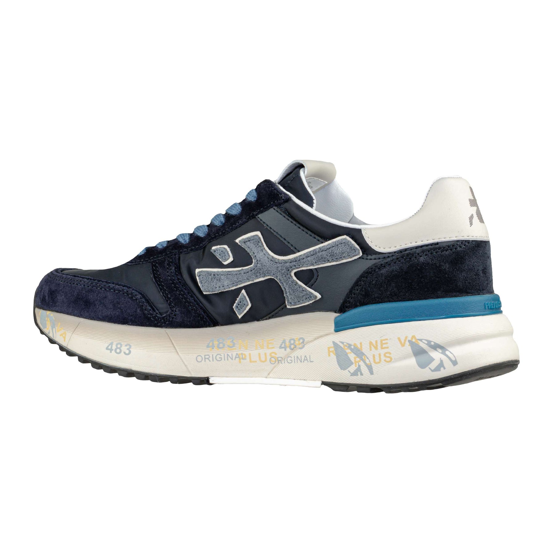 Sneakers PREMIATA MICK 7716 in una raffinata combinazione di tessuto tecnico e camoscio nei toni del blu e grigio. Fodera e soletta in pelle per massimo comfort, fondo in gomma con altezza 3,5 cm e stampa logata. Design dinamico e versatile, perfetto per la stagione autunno inverno 2025.