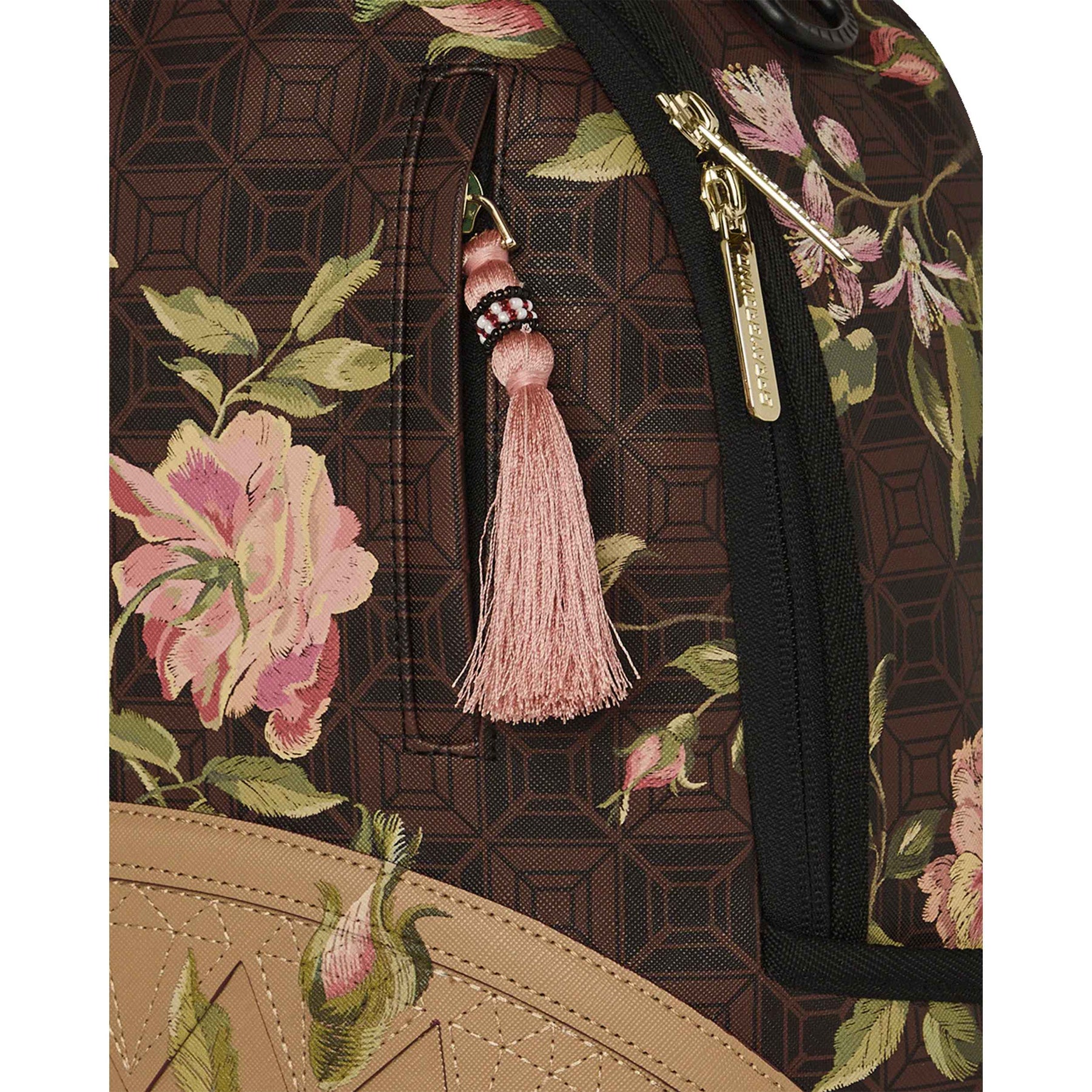 Lo zaino Sprayground AI Henny Floral Backpack rappresenta un’evoluzione sofisticata del classico design street del brand, fondendo l'estetica ribelle con un’eleganza ornamentale di grande impatto. La struttura presenta l'iconico motivo "Henny" a scacchi scuri su cui fioriscono ricami floreali dai toni rosa e verdi, creando un contrasto visivo unico tra rigore geometrico e delicatezza naturale. L’immancabile bocca di squalo frontale è realizzata in una tonalità sabbia che armonizza l’intera composizione, arricchita da dettagli metallici dorati e una raffinata nappina rosa sulla cerniera superiore.
