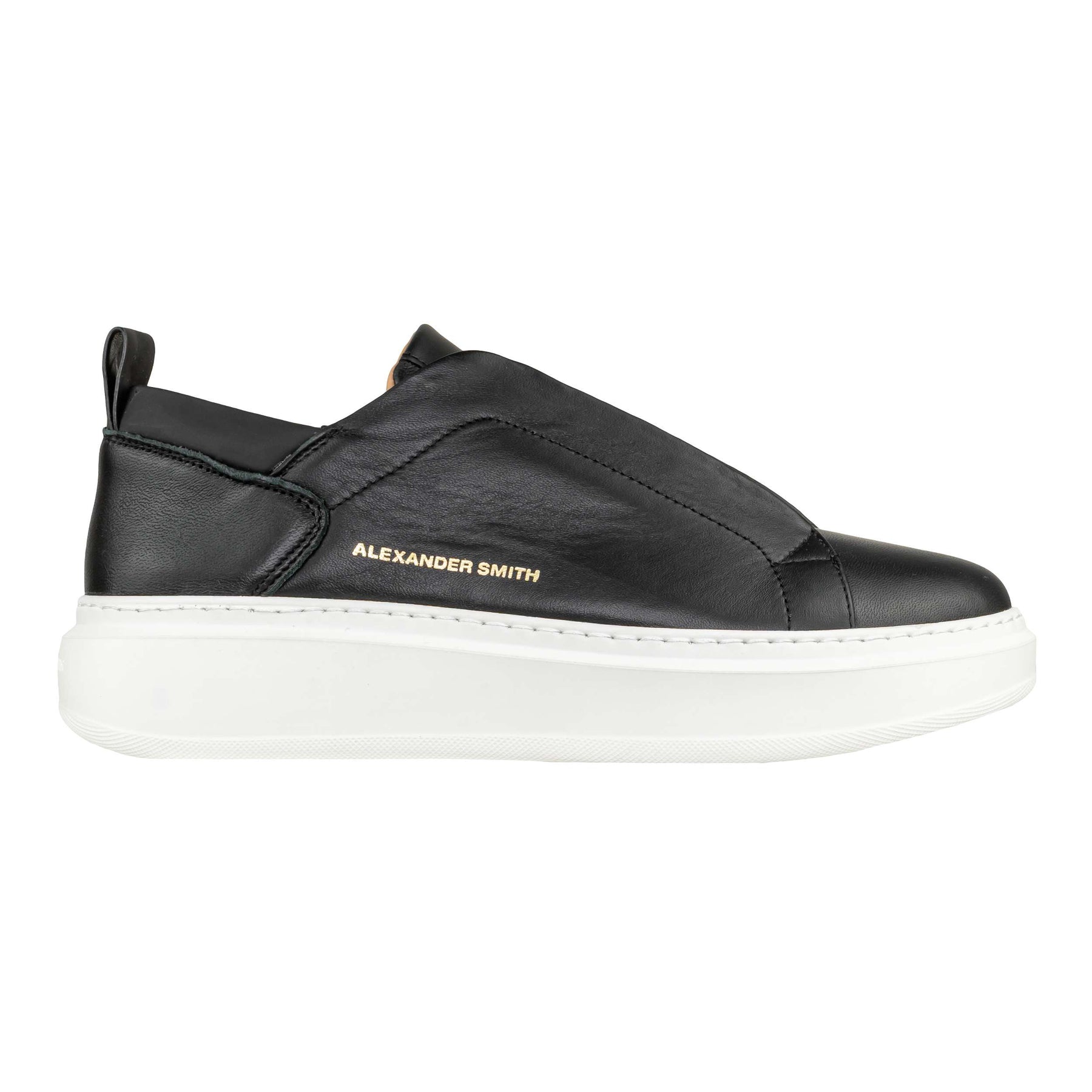 Minimal e contemporanea, la sneaker slip-on Alexander Smith in pelle nera unisce stile e funzionalità. La tomaia in pelle liscia con dettaglio elastico sostituisce i lacci, garantendo una calzata pratica e veloce, ideale per la vita dinamica di tutti i giorni. L’interno in pelle assicura traspirabilità e comfort prolungato, mentre il fondo in gomma ultraleggero offre stabilità e una camminata naturale. Un modello versatile e raffinato che interpreta con modernità il concetto di sneaker. Altezza tallone dal suolo 4 cm. Collezione Autunno/Inverno 2025.