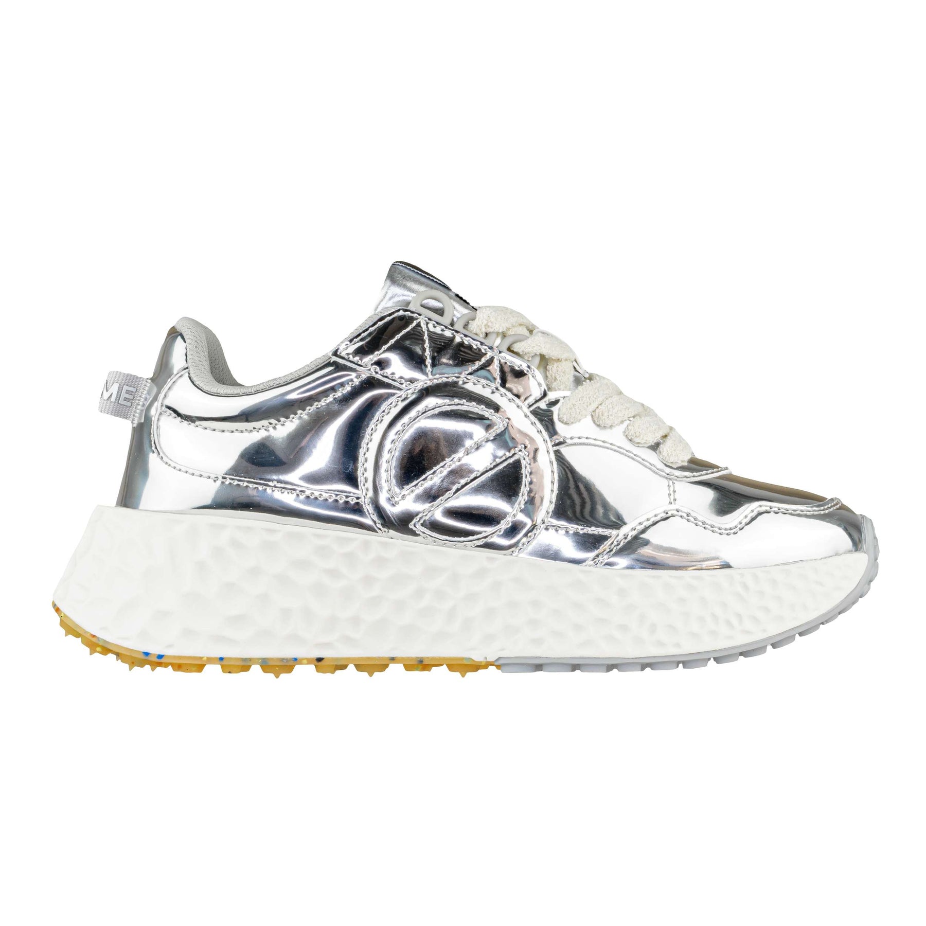 NO NAME CARTER JOGGER W SILVER Sneaker dallo stile audace e futuristico,cattura l’attenzione con la sua tomaia in laminato effetto specchio color argento, che riflette la luce creando un look deciso e ultra moderno. Il logo laterale tono su tono si integra nel design con eleganza, mentre i lacci spessi aggiungono un tocco sportivo. Fodera e soletta in tessuto garantiscono comfort e traspirabilità per tutta la giornata. Il fondo in gomma bianca scolpita, alto 3,5 cm, assicura leggerezza e ammortizzazione. Perfetta per la stagione autunno inverno 2025, è la sneaker ideale per chi vuole distinguersi con carattere.