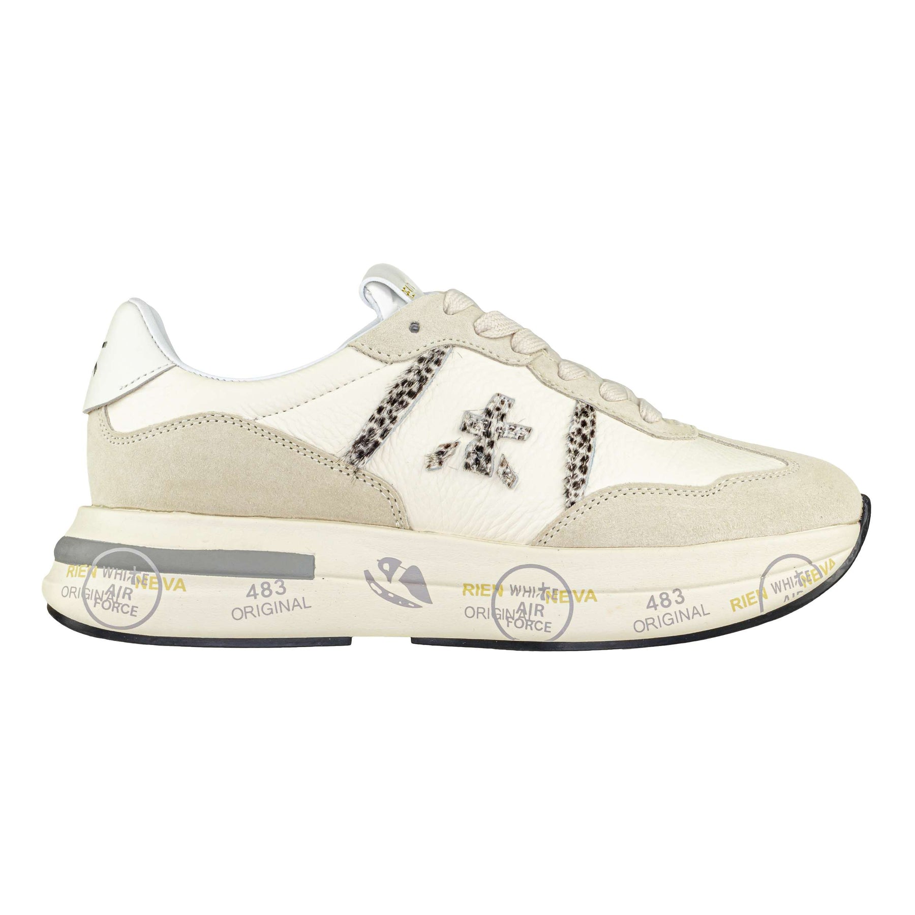 Sneaker firmata Premiata modello Cassie 7682, realizzata con tomaia in pelle, camoscio e inserti in cavallino a contrasto. Fodera e soletta in pelle per un comfort ottimale. Il fondo in gomma, con altezza di 4 cm nella parte inferiore, garantisce ammortizzazione e stile. Un mix di materiali raffinati e dettagli grintosi, per completare ogni look con personalità.