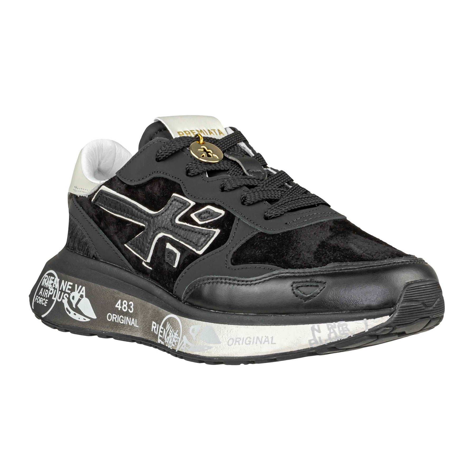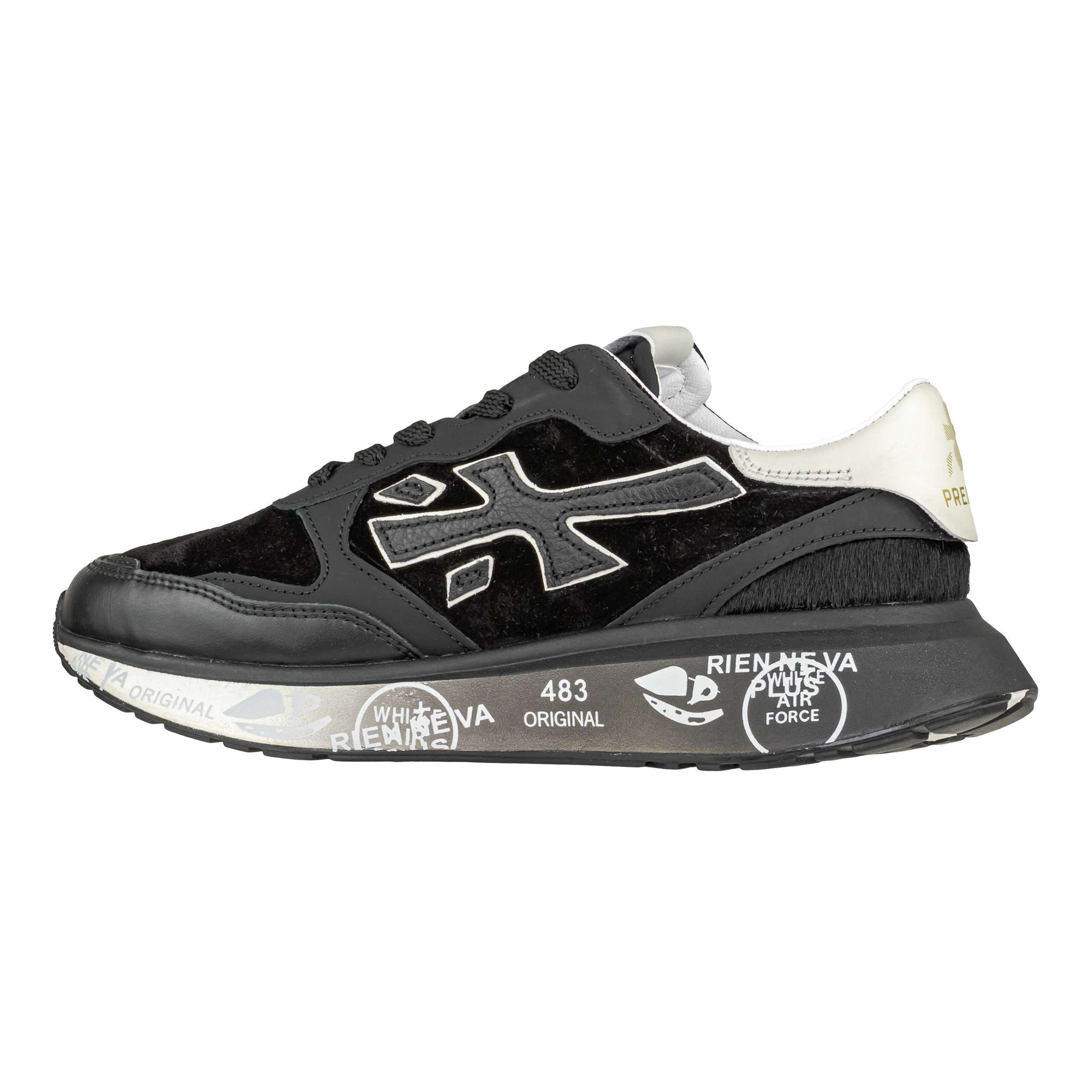 La sneaker Premiata Lauryn 7803 è un modello iconico e sofisticato, pensato per la stagione autunno/inverno 2025. La tomaia in pelle liscia e camoscio nero, arricchita da dettagli bianchi a contrasto, dona un’eleganza sportiva e senza tempo. La fodera e la soletta in pelle offrono comfort e traspirabilità durante tutta la giornata, mentre il fondo in gomma da 3 cm garantisce stabilità e una calzata confortevole. La suola personalizzata con le grafiche distintive Premiata e il charm logato sui lacci aggiungono un tocco di esclusività. Perfetta per completare look casual-chic o urban con stile deciso e raffinato.