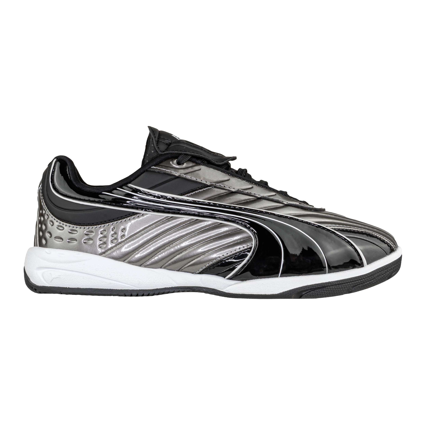 Ispirate alle V Series dei primi anni 2000, le nuove PUMA V-S2 Goalgetter si aggiornano in una chiave contemporanea e grintosa. In questa versione in argento e nero con suola bianca, si distinguono per la tomaia in materiale sintetico lucido che riflette la luce con stile. La costruzione con linguetta in tessuto, fodera morbida e punta arrotondata offre comfort quotidiano e una calzata regolare. La suola in gomma assicura aderenza e durata anche nelle giornate più dinamiche. Un modello perfetto per chi vuole lasciare il segno con carattere. Collezione Primavera/Estate 2025.